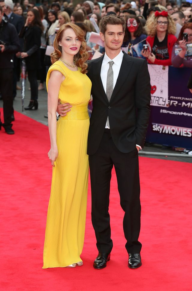 В беседе с изданием актриса рассказала об образе, который выбрала для премьеры фильма «Новый Человек-паук: Высокое напряжение» (Лондон, 2014 год) и упомянула Эндрю Гарфилда. Известно, что в то время Эмма Стоун состояла с ним в отношениях.