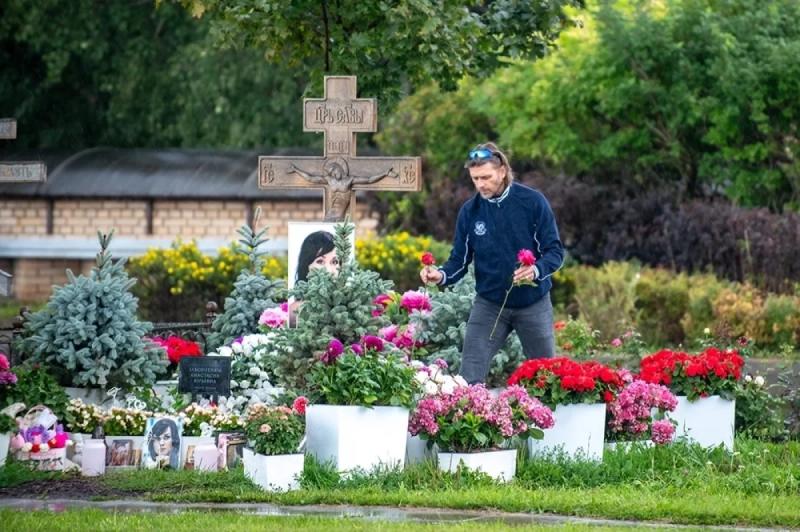 «Каждый день — памятная дата!» — отвечает он на вопросы журналистов безутешный вдовец, поправляя цветы у могилы Насти.