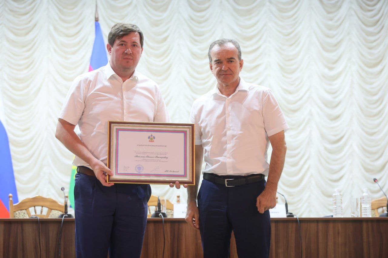 Во время съезда также провели награждение – Вениамин Кондратьев присвоил почетное звание «Заслуженный работник сельского хозяйства Краснодарского края» главе крестьянско-фермерского хозяйства из Белоглинского района Николаю Белану, еще три человека получили благодарности губернатора.
