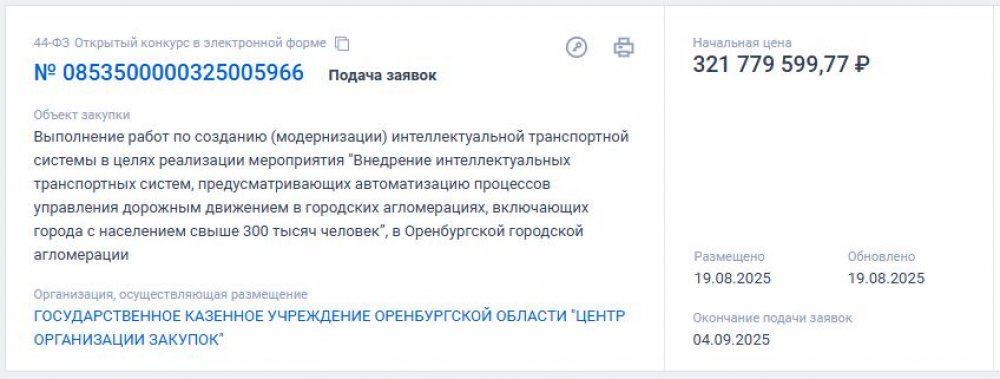 Главное управление дорожного хозяйства Оренбургской области (ГУДХОО), ищет подрядчика, который создаст в Оренбурге интеллектуальную транспортную систему, которая будет управлять городскими светофорами и делать так, чтобы они работали в оптимальном режиме — обеспечивая безопасность движения и не создавая при этом пробок.