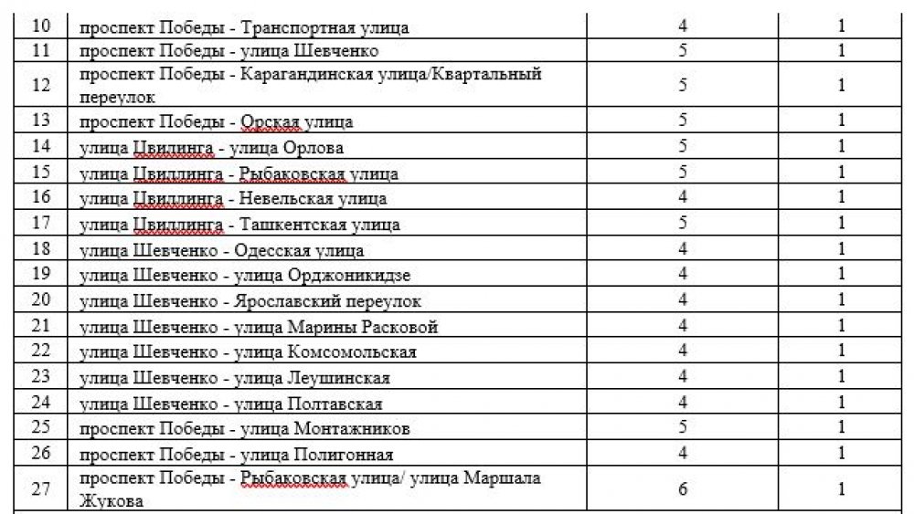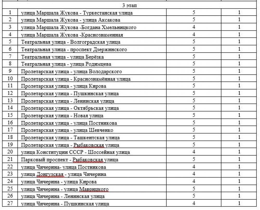 Вот адреса светофоров, которые будут подключены к чудо-системе: