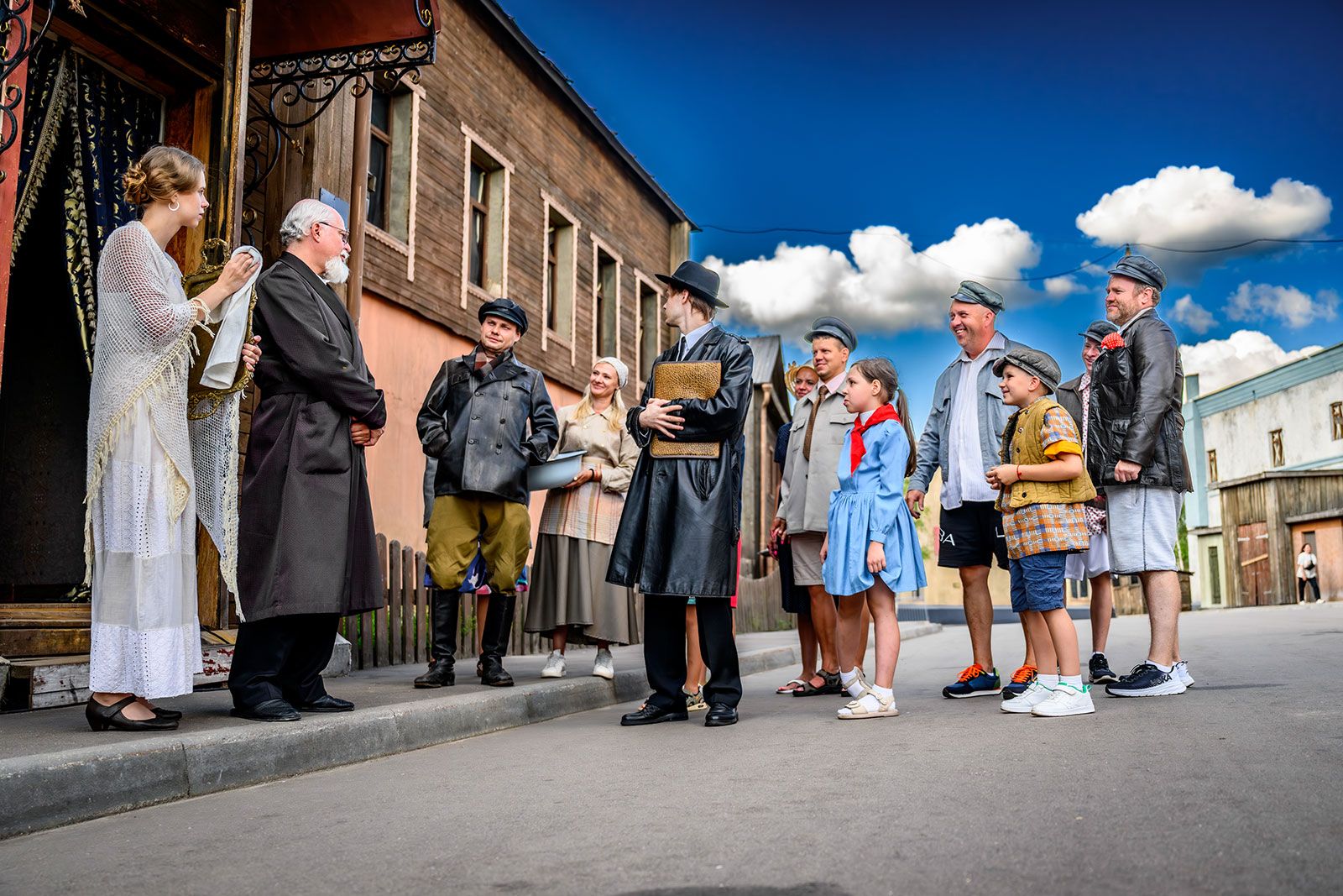 В «Московском дворике» с 12:00 до 19:00 на постановочных съемках фильма «Сказка о потерянном времени» посетители вспомнят диалог Пети с покупателями на рынке, которым он пытался продать овощи, примерят костюмы и сыграют в сцене в окружении декораций. Стать актером можно на площадке «Москва 1940-х годов», где также с 12:00 до 19:00 будут идти постановочные съемки картины «Собачье сердце».