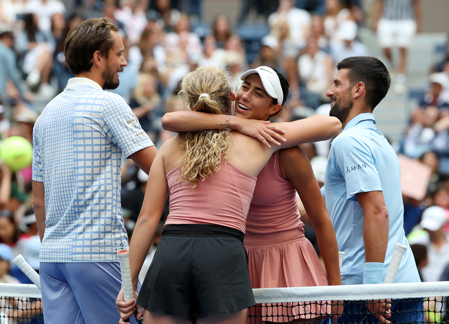 Объективности ради, звёзд на мероприятии в Нью-Йорке собралось достаточно — среди участников были в том числе Новак Джокович, Карлос Алькарас, Александр Зверев, Ига Свёнтек, Мирра Андреева... 18-летняя россиянка встала в дуэт с Даниилом Медведевым. И уже в первом круге они волей жребия попали на легендарного Джоковича и Ольгу Данилович.
