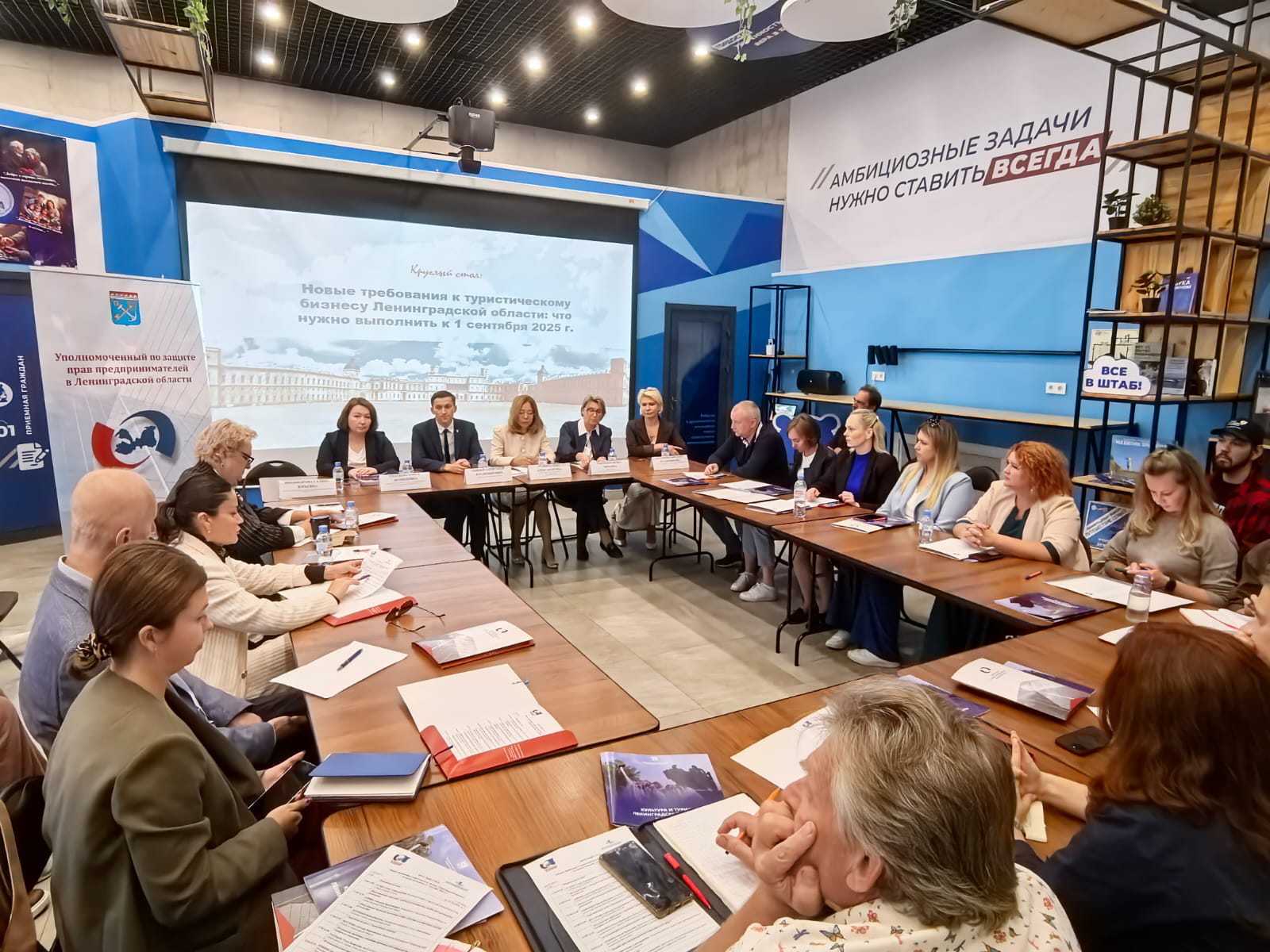 Круглый стол «Новые требования к туристическому бизнесу ленинградской области: что нужно выполнить к 1 сентября 2025 г.» был организован Ленинградской областной ТПП и Уполномоченным по защите прав предпринимателей в Ленинградской области Еленой Рулевой.