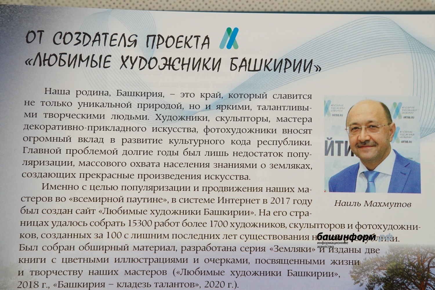 С целью популяризации и продвижения талантливых земляков во «всемирной паутине», в 2017 году был создан интернет-сайт «Любимые художники Башкирии», на страницах которого удалось собрать около 15 500 работ более 1700 художников, скульпторов и фотохудожников, созданных за 100 с лишним последних лет существования нашей республики. Был собран обширный иллюстративный материал, написаны очерки, посвященные жизни и творчеству наших мастеров, изданы книги.