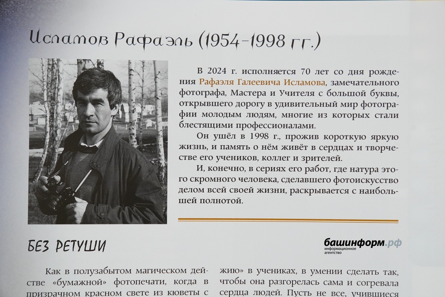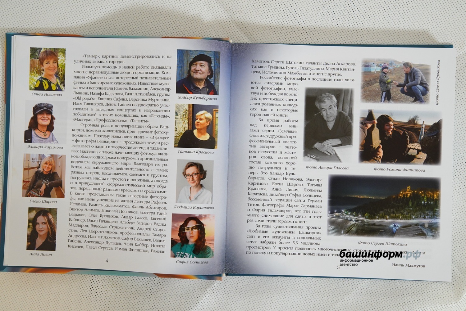В книге представлены очерки о 51 фотохудожнике. Это такие известные фотографы, как ныне ушедшие из жизни легенды Рафаэль Исламов, Рамиль Кильмаматов, Фаиль Абсатаров, Виктор Алимов, Николай Посников, мастера и профессионалы Раиф Бадыков, Анвар Галеев, Вячеслав Стрижевский, Евгений Вайднер, Фарид Гильмияр, Марат Сарманаев, Тамара Андреева, Ильшат Ахметов, Сафар Бахышев, Александр Дульцев, Павел Сергеев, Роман Филиппов и многие другие. Есть в книге очерки и об известных фотолетописцах «Башинформа» — Олеге Яровикове и ранее работавшем в агентстве Андрее Старостине.