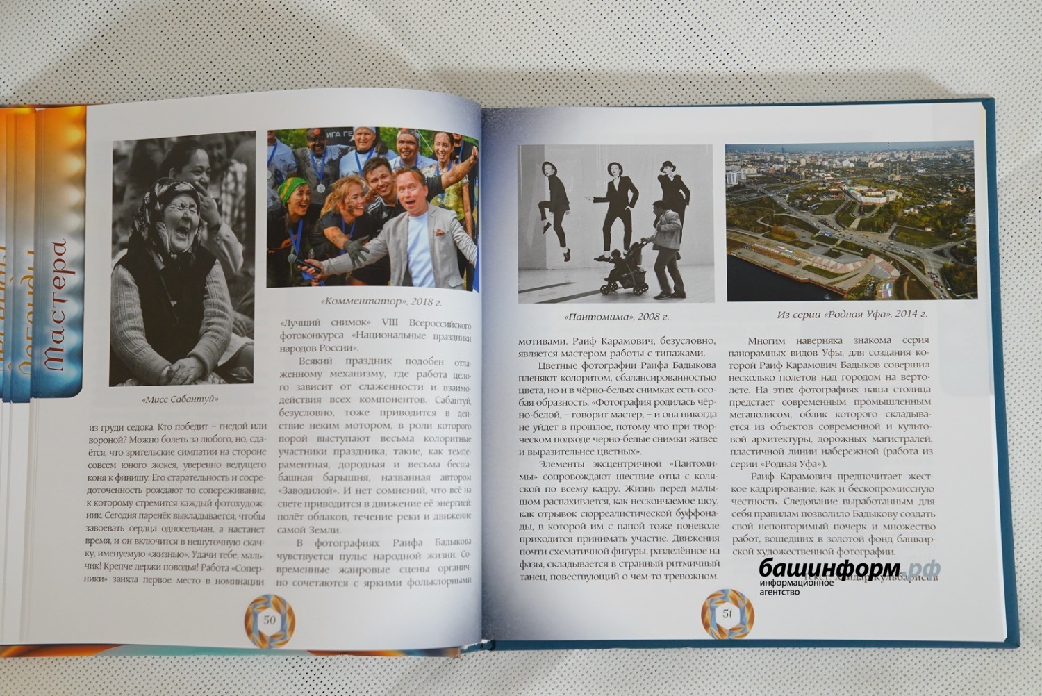– Фотографы много лет бескорыстно все помогали мне на всех мероприятиях проекта "Любимые художники Башкирии", начиная с первой пресс-конференции в "Башинформе". И на остальных концертах, мероприятиях, встречах, поездках с художниками и зрителями они фотографировали и отдавали снимки мне. У меня возник долг перед ними, и я должен был, как порядочный человек, им отплатить таким же добром. И вот эта книга – дань уважения и благодарности за то, что они делают для жителей республики в целом и для меня в частности,– поделился своими размышлениями Наиль Махмутов.