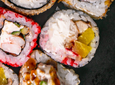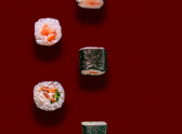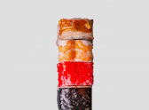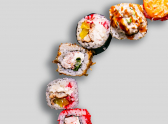 Рокин ролл (200 г, 250 ₽), Филадельфия с креветкой (230 г, 400 ₽), Гейша с угрём (240 г, 500 ₽), Гейша с лососем (225 г, 480 ₽), Динамит (220 г, 350 ₽),