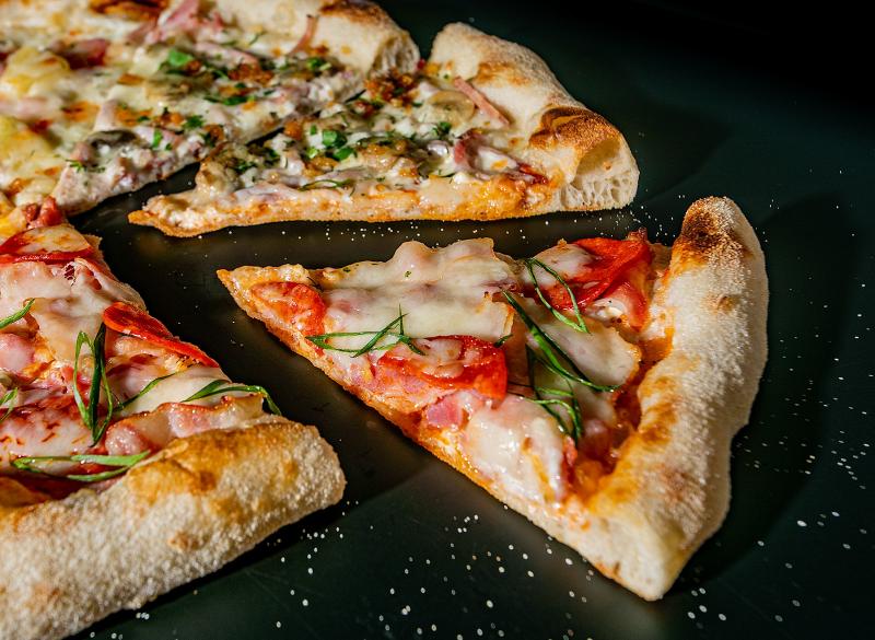 Пицца 4 вкуса (715 г, 599 ₽), Пицца Гамберетти (710 г, 599 ₽), Пицца BBQ (750 г, 599 ₽).