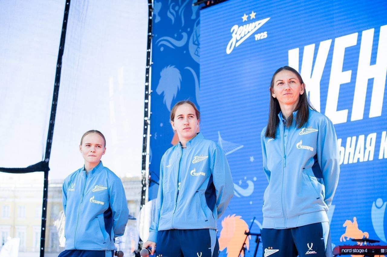 Яркое спортивное событие проходит на главной площади Санкт-Петербурга. Женская команда «Зенит» организовала масштабную открытую тренировку и встречу с болельщиками.