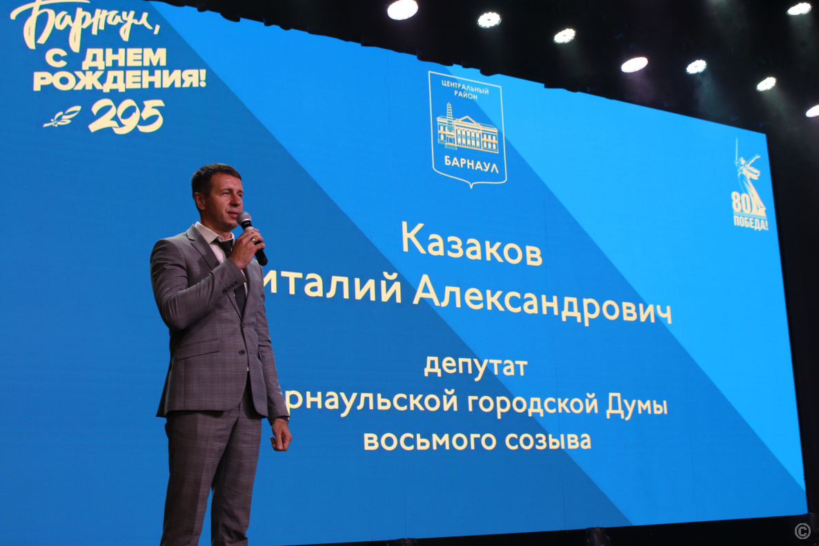 «История города это не только здания предприятия и учреждения. Это, прежде всего история его жителей и тружеников. Благодаря личному вкладу каждого барнаульца при поддержке Правительства Алтайского края, активному участию администрации города и депутатов в целевых программах, город развивается, становиться более уютным и благоустроенным. За что хотелось высказать каждому из присутствующих в зале слова благодарности и признательности!», - отметил глава района Максим Сабына.