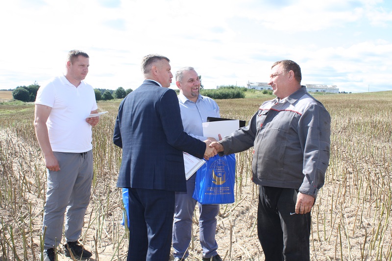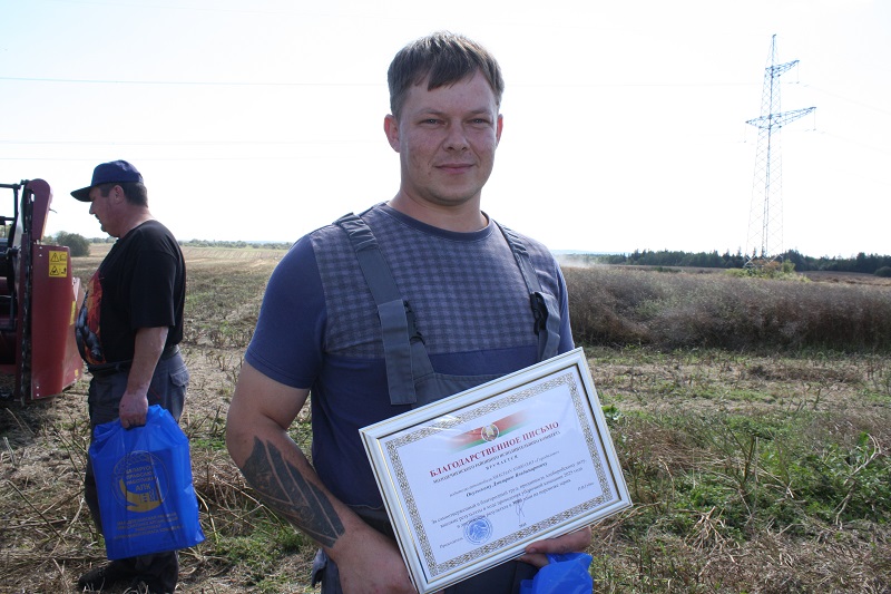 Поздравить хлеборобов с трудовыми победами приехали председатель Молодечненского районного исполнительного комитета Павел Губко и председатель районной профсоюзной организации работников АПК Анатолий Фурс. Они поблагодарили работников за ударный труд, любовь к земле и преданность делу, а также вручили заслуженные награды.