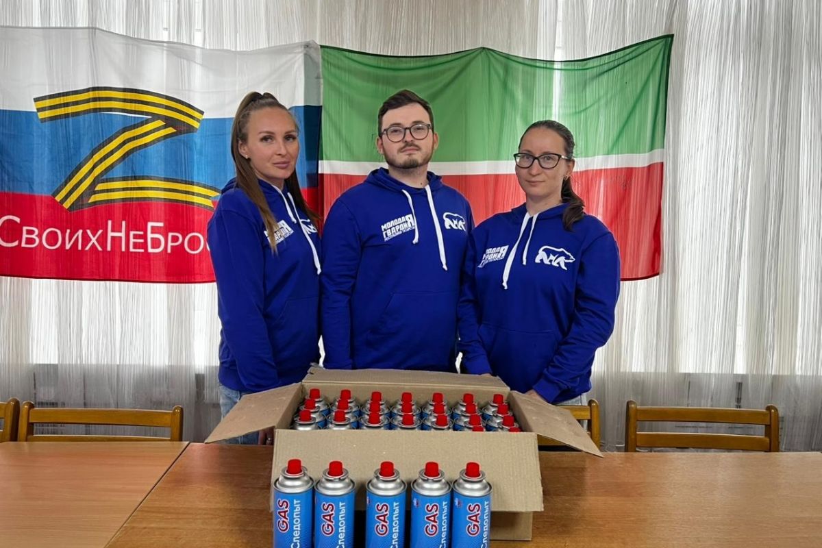 Из города Буинск в Татарстане активисты «Молодой Гвардии» и секретарь местного отделения Гульчачак Андреева передали военнослужащим 28 газовых баллонов.