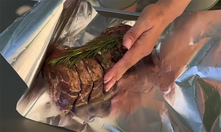 Подготовленные куски заверните в пакет или рукав для запекания, плотно закройте и оставьте мариноваться на сутки в холодильнике. Если времени меньше, дайте мясу промариноваться хотя бы ночь. На следующий день разогрейте мангал и подготовьте угли. Каждую шею плотно заверните в несколько слоев фольги вместе с розмарином и чесноком, следя за тем, чтобы соки не вытекали. Выложите мясо на решетку мангала и накройте крышкой.
