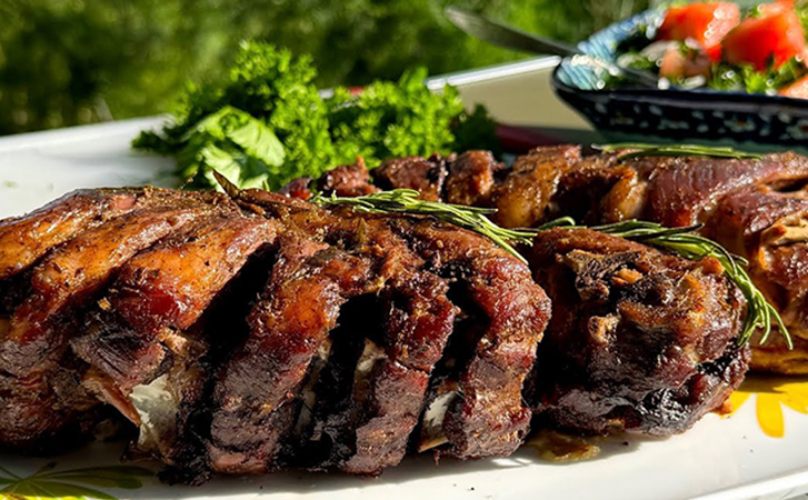 Баранья шея идеально подходит для приготовления на огне, потому что долгое томление в фольге превращает мясо в мягкое и сочное, при этом оно легко отделяется от костей. Благодаря чесноку и розмарину каждый кусочек получает выразительный аромат и насыщенный вкус, притом что готовить почти ничего и не требуется.