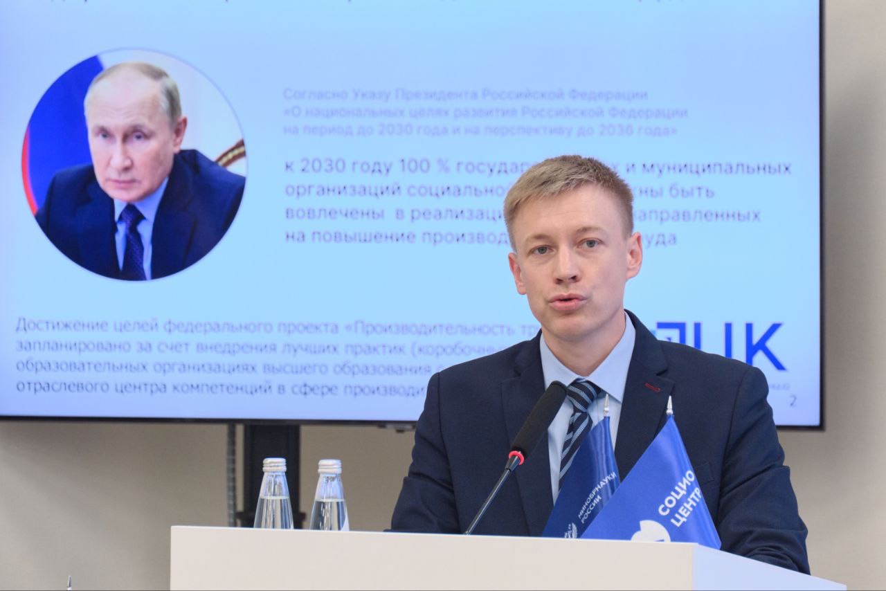 В открытии мероприятия приняли участие заместитель директора Департамента координации деятельности образовательных организаций Минобрнауки России А.С. Несутулов, генеральный директор АНО «Федеральный центр компетенций в сфере производительности труда» М.В. Папушенко, которые познакомили участников с подходами к оценке уровня производительности труда в системе высшего образования и практическими инструментами повышения производительности труда.
