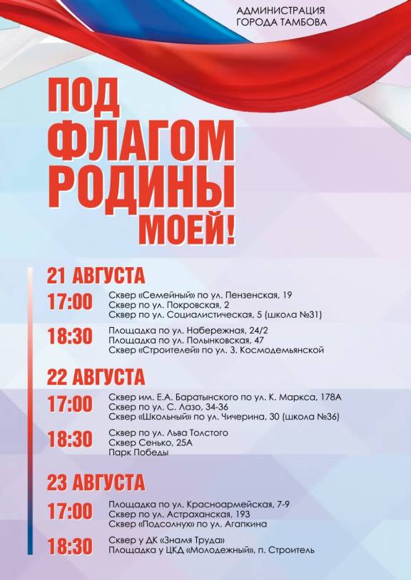 Что посмотреть, куда сходить в субботу, 23 августа - расскажет ИА "Онлайн Тамбов.ру".