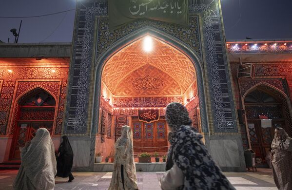 Иранские женщины идут по священному месту в городе Астане-йе-Ашрафие, провинция Гилян, Иран.