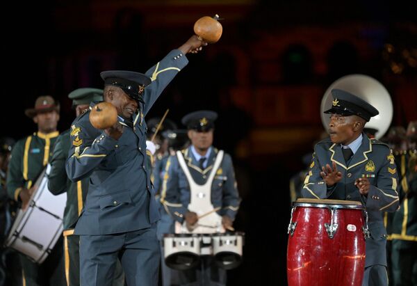 Оркестр Вооруженных сил Зимбабве на генеральной репетиции церемонии открытия XVII Международного военно-музыкального фестиваля "Спасская башня" на Красной площади в Москве.