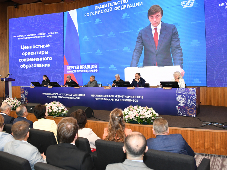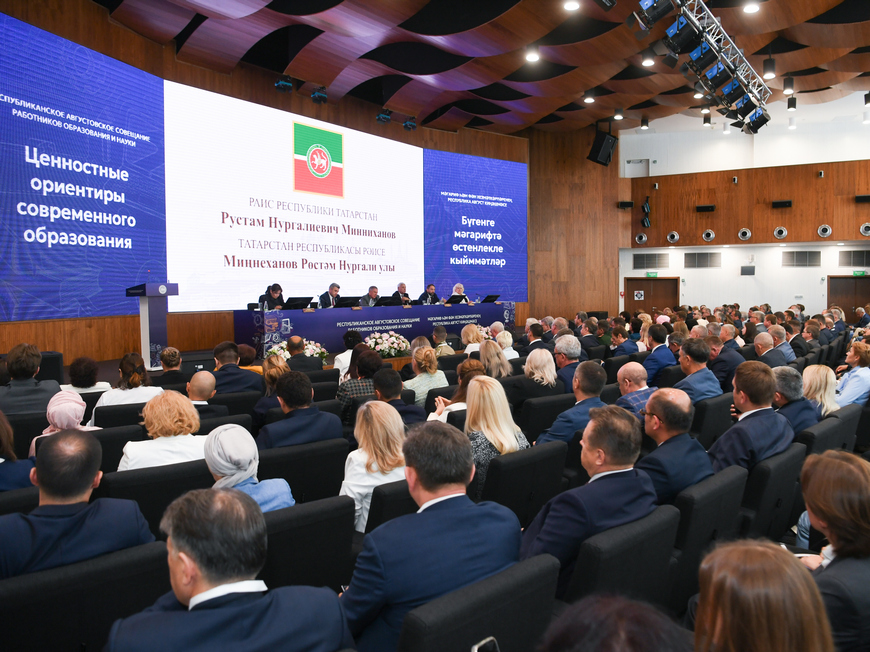Сегодня в Иннополисе под председательством раиса РТ Рустама Минниханова состоялось ежегодное пленарное заседание республиканского августовского совещания работников образования и науки. Главной темой обсуждения стали «Ценностные ориентиры современного образования». В ходе встречи подвели итоги прошедшего учебного года и определили задачи на предстоящий период. Среди участников были министр образования и науки РТ Ильсур Хадиуллин, мэр Казани Ильсур Метшин и другие.