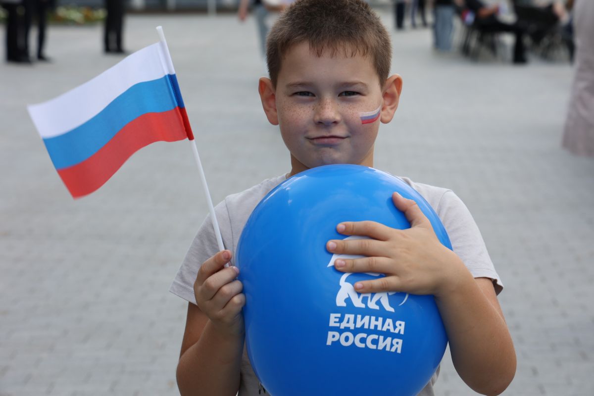 Кульминацией мероприятия стало торжественное шествие активистов, сторонников, членов местного отделения «Единой России». Они развернули полотнище флага и прошли с ним по скверу.