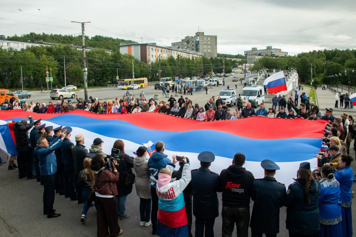 В Мурманске прошёл митинг-концерт у Семёновского озера. Горожан с праздником поздравили местные исполнители и творческие коллективы, состоялись мастер-классы. В завершение праздника мурманчане развернули масштабную копию полотнища флага РФ.