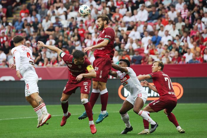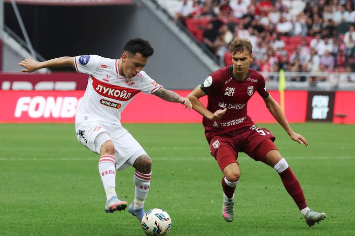 Безусловно, многочисленные болельщики красно-белых ехали, летели в столицу Татарстана, чтобы воочию понаблюдать за яркой и красивой игрой любимцев, они хотели увидеть победу дружины, но у почитателей хозяйской команды тоже были мало чем отличающиеся чаяния. Понятно и очевидно было одно: битва точно подарит всем и каждому, кто пожаловал на трибуны, массу разнообразных эмоций и впечатлений. Автор этих строк прилетел в Казань за три с половиной часа до стартового свистка рейсом «Аэрофлота». Очень удобно для неспешного перемещения из аэропорта к стадиону, расположенному на пересечении проспекта Ямашева и улицы Чистопольской. Погода в целом была приемлемой, по температуре воздуха – уж точно. Всё-таки +24 градуса для игры в футбол и посещения арены – отличные условия, даже невзирая на возможность осадков. Разумеется, всех интересовали избранные тренерами сочетания. В итоге же с первых минут соперники появились в следующих составах. «Рубин»: вратарь Евгений Ставер, защитники Егор Тесленко, Игор Вуячич и Алексей Грицаенко, полузащитники Велдин Ходжа, Угочукву Иву, Дмитрий Кабутов, Богдан Йочич и Илья Рожков, нападающие Мирлинд Даку и Дардан Шабанхаджай. «Спартак»: вратарь Александр Максименко, защитники Руслан Литвинов, Алексис Дуарте, Даниил Денисов и Срджан Бабич, полузащитники Кристофер Мартинс, Наиль Умяров, Маркиньос, Жедсон Фернандеш и Эсекьель Барко, нападающий Манфред Угальде. В целом выбор наставников оказался весьма предсказуемым, при этом гости вновь сыграли в три центральных. И вряд ли стоило ждать в «старте» их новичка Илью Самошникова.