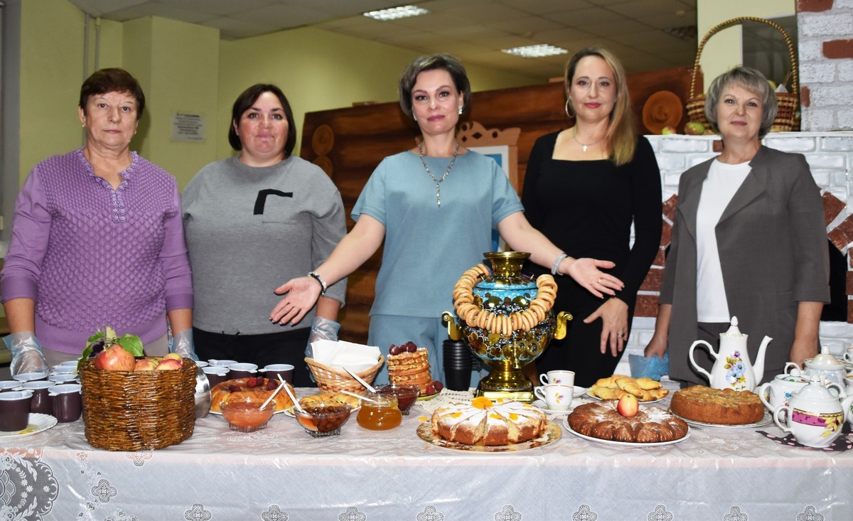 После концерта в фойе Дома культуры на фестивале «Красна Рязань куполами, а Путятино пирогами» каждый мог попробовать пироги, которые напекли для праздника хозяйки Путятинского округа, попить чаю в «Чайной величальной» и помочь волонтерам в плести маскировочные сети для СВО.