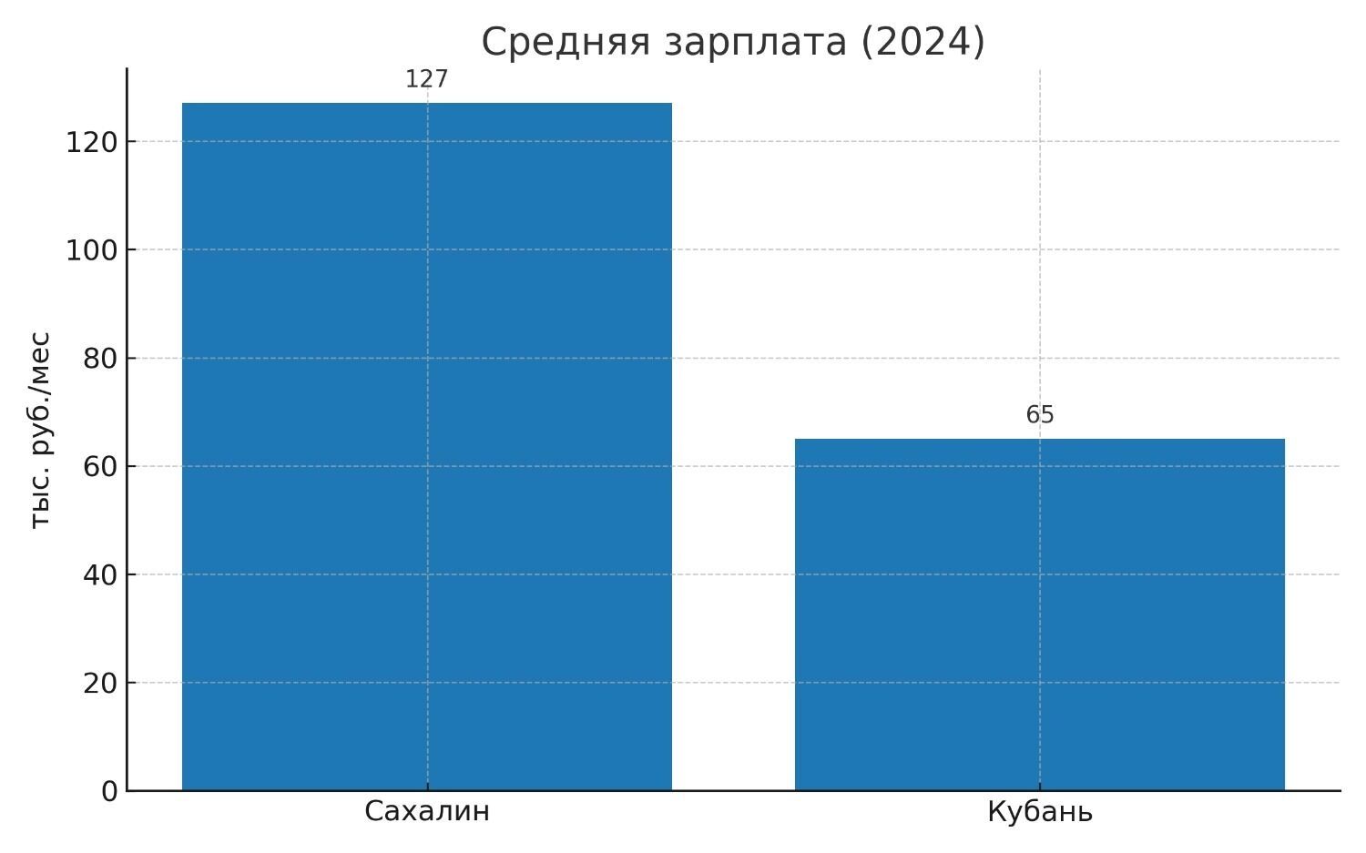 При этом важно учитывать уровень доходов населения: средняя зарплата на Сахалине — 127 тысяч рублей в месяц, а в Краснодарском крае — примерно 65 тысяч рублей. Разница значительная, но в соотношении с доходами расходы на образование выглядят сопоставимо.