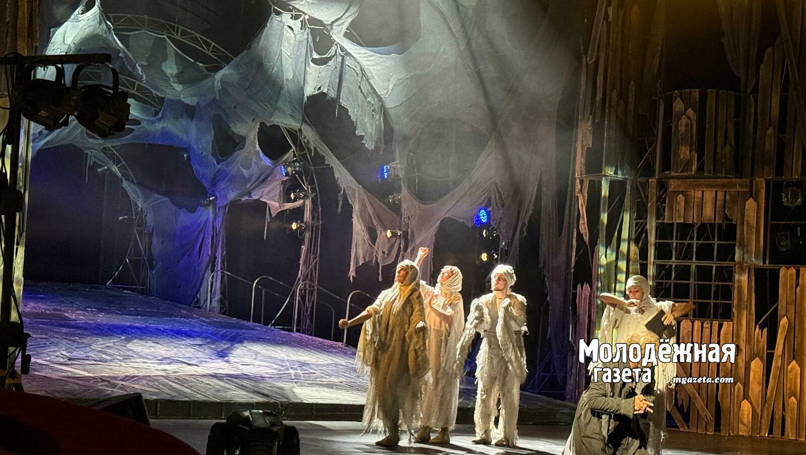Особо хотелось бы отметить шедевриальную сценографию и костюмы проекта художника-постановщика Сергея Александрова. На сцене выстроен впечатляющий размерами туннель со свисающими лохмотьями полуистлевшей, с огромными дырами ткани, похожей на паутину. Перспектива конструкции уводит взгляд то ли в загробный мир, так похожий на готические миры Тима Бертона, то ли в гнилое зазеркалье многоходовок чиновничьих игр… Не зря же одним из центровых элементов декораций становится огромная черно-белая шашечная доска — символ игры. Такие же доски мы видим и у некоторых персонажей.