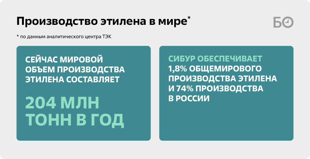 Еще одним крупным этиленовым проектом должен стать Амурский газохимический комплекс. Проект реализуется СИБУРом, его введение в эксплуатацию планируется в 2026 году, а мощность по этилену составит 2,3 млн тонн. Помимо проектов БХК и СИБУРа, в России до 2030-го анонсировано введение в эксплуатацию проекта Каспийской инновационной компании (принадлежит «Газпрому», мощность по этилену — 300 тыс. т в год, планируемый год ввода — 2027-й).