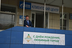 Так, коллектив ООО «Газпром межрегионгаз Курган» в преддверии Дня города украсил входную группу брендбуком и плакатом «С днем рождения, любимый город!». Обращаясь к горожанам, генеральный директор ООО «Газпром межрегионгаз Курган» Дмитрий Осетров отметил, что в этом году празднование 346-го дня рождения Кургана совпало с особой датой – присвоением городу почётного звания «Город трудовой доблести». «Компания «Газпром межрегионгаз Курган» присоединяется к поздравлениям и всецело поддерживает администрацию города в создании праздничной атмосферы. Мы хотим, чтобы каждый абонент, увидев праздничную символику, почувствовал себя частью этого большого события и разделил с нами радостное настроение», - добавил Дмитрий Николаевич. Он пожелал горожанам здоровья, благополучия и выразил чувство гордости за трудовой и героический Курган.