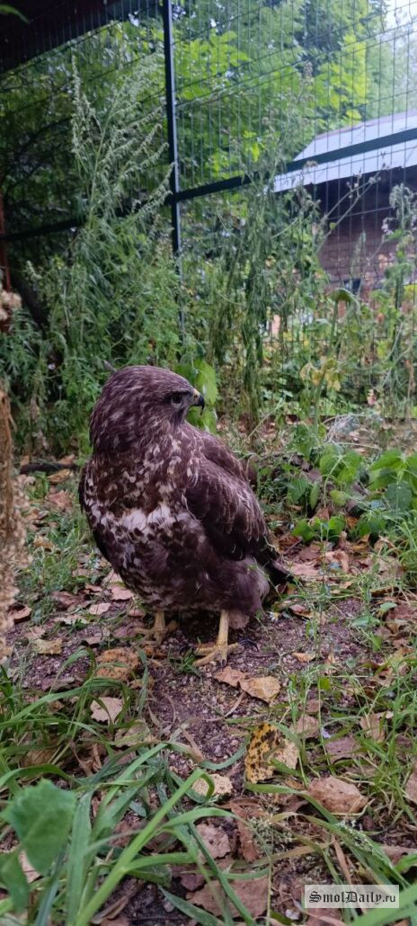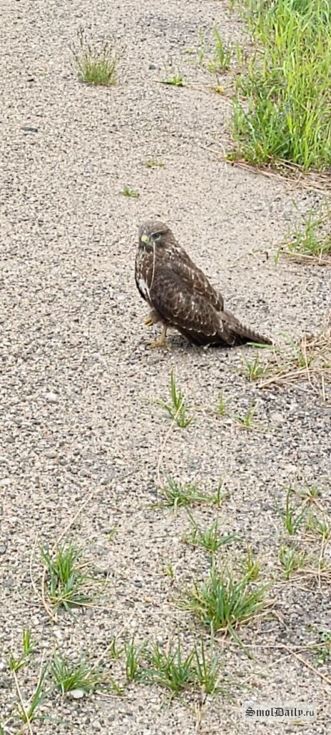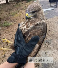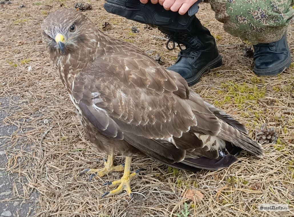 Сотрудники кинологического отдела Смоленской таможни обнаружили на обочине дороги ослабленного канюка, который не мог самостоятельно улететь.