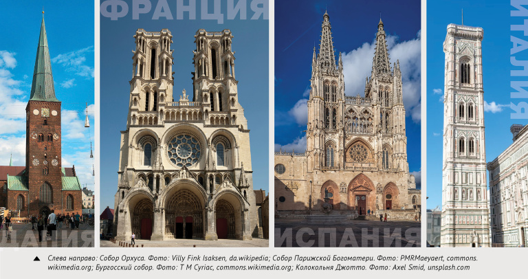 За примерами далеко ходить не надо, взять ту же готику: тяжеловесно-мрачную – в Скандинавии и Северной Германии, торжественную – во Франции, помпезную – в Испании, легкую, светлую – в Италии (флорентийская колокольня Джотто и миланский собор). Вместе с тем, в готическом стиле все же сохраняется паритет между конструктивными, собственно архитектурными компонентами (стрельчатые окна и своды, нервюры, контрфорсы) и декоративными элементами.