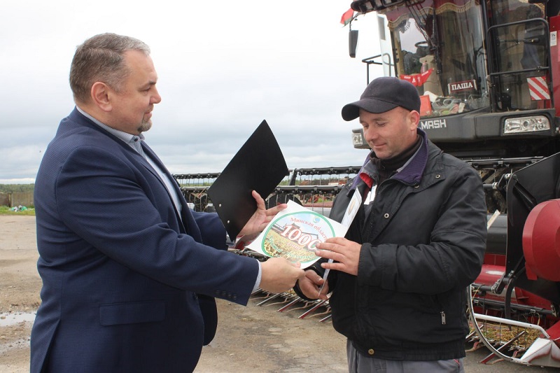 Благодарственным письмом отмечен самоотверженный и благородный труд старшего комбайнера Александра Стефановича и комбайнера Виталия Марковского — за достижение намолота зерна в 3000 тонн. Также рубеж в 3000 тонн на перевозке зерна преодолели водитель Александр Сивец и тракторист-машинист Денис Гнилозуб.
