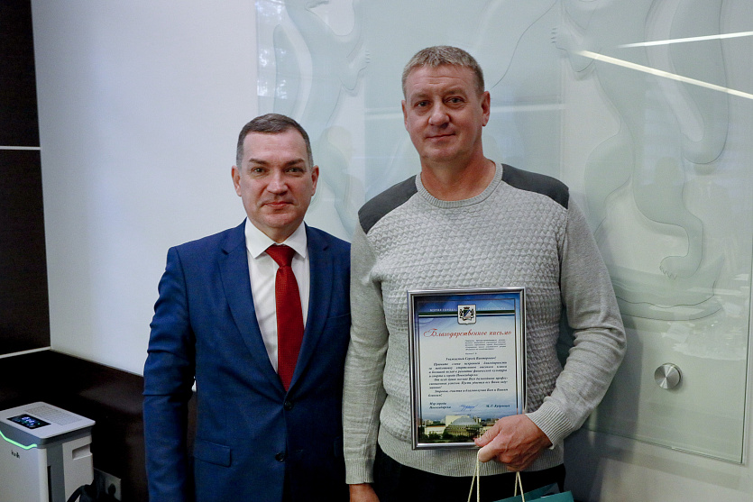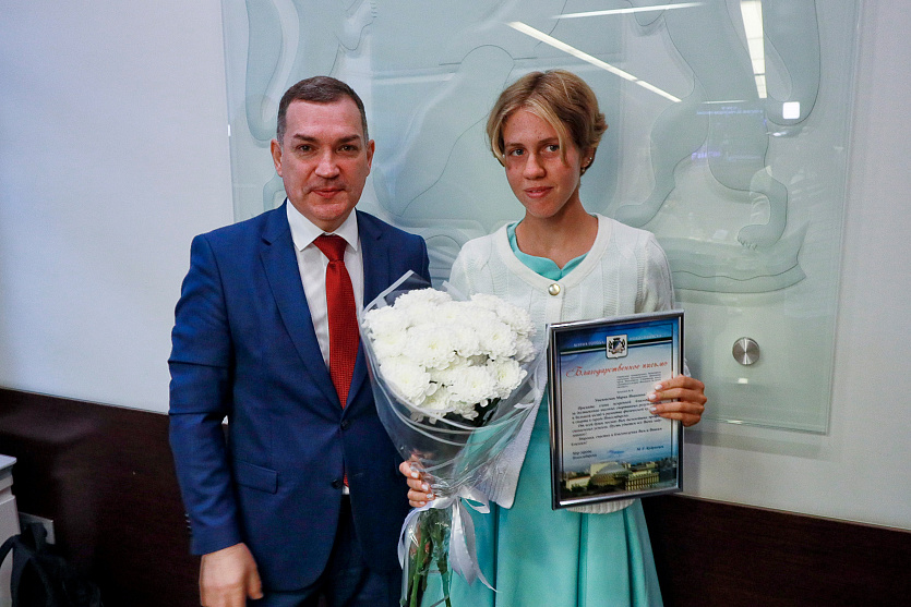 Вернувшуюся из Казани чемпионку России Марию Ермакову лично поздравил мэр Максим Кудрявцев. Он встретился со спортсменкой и её тренером Сергеем Наумовым.