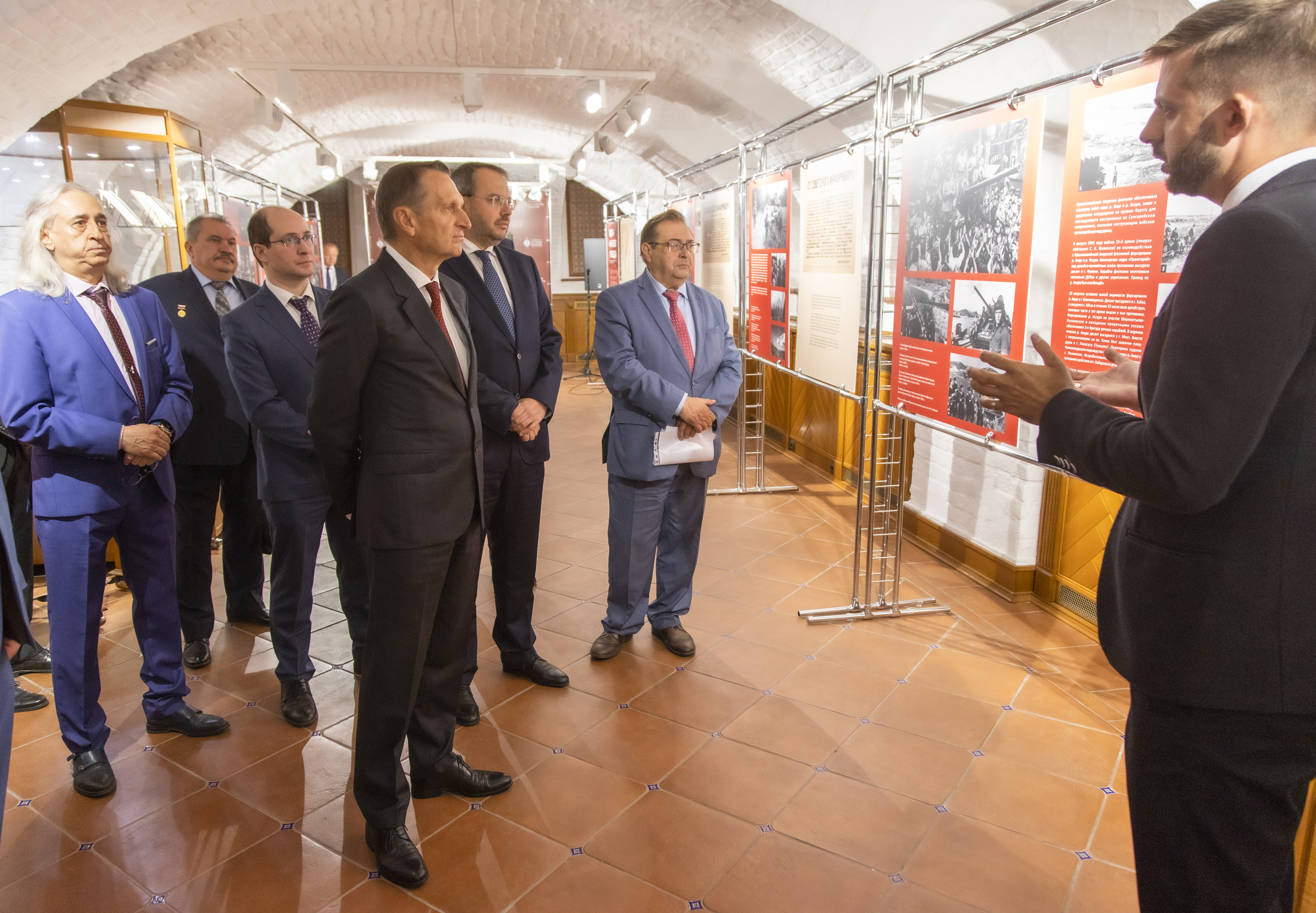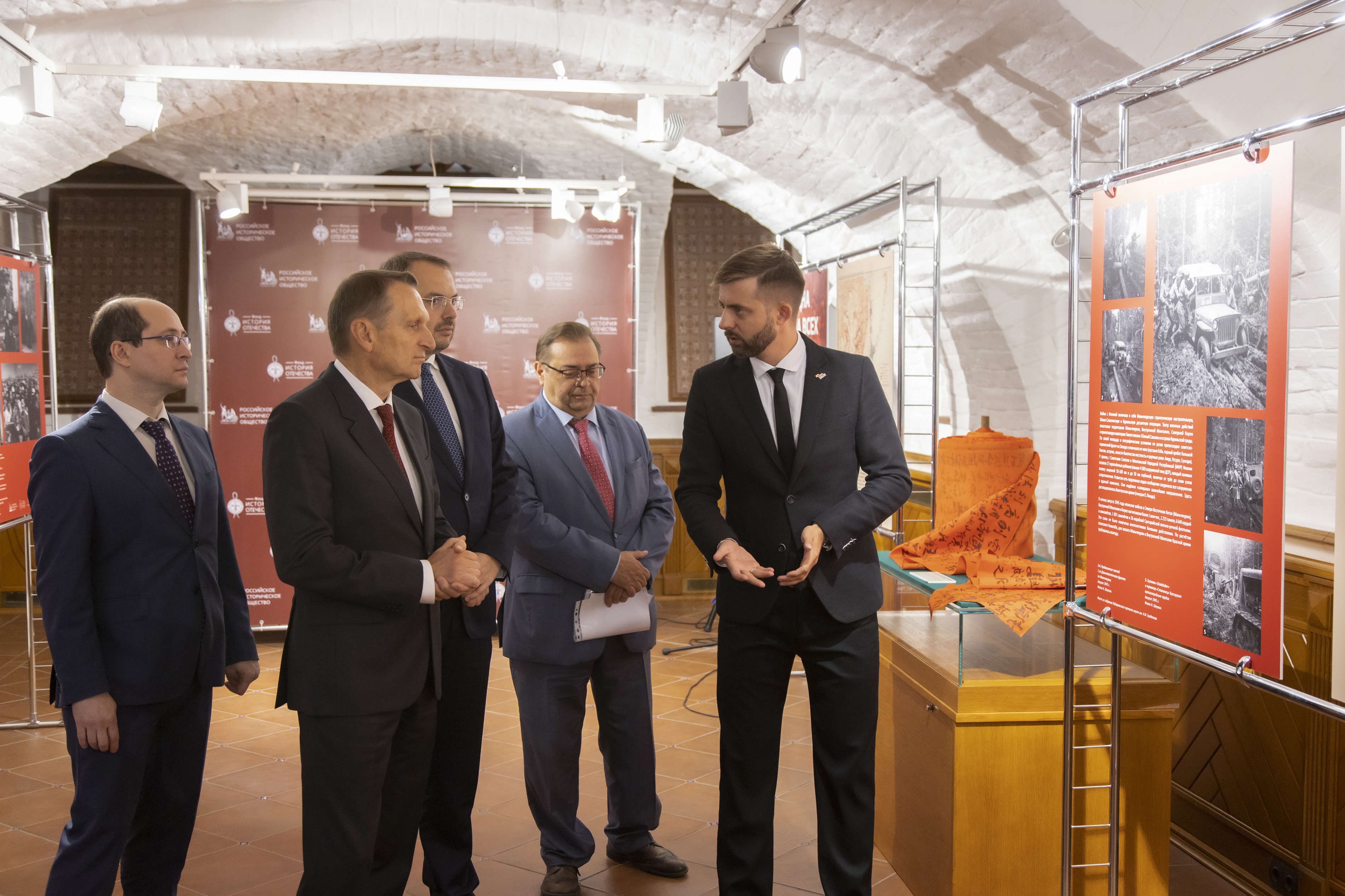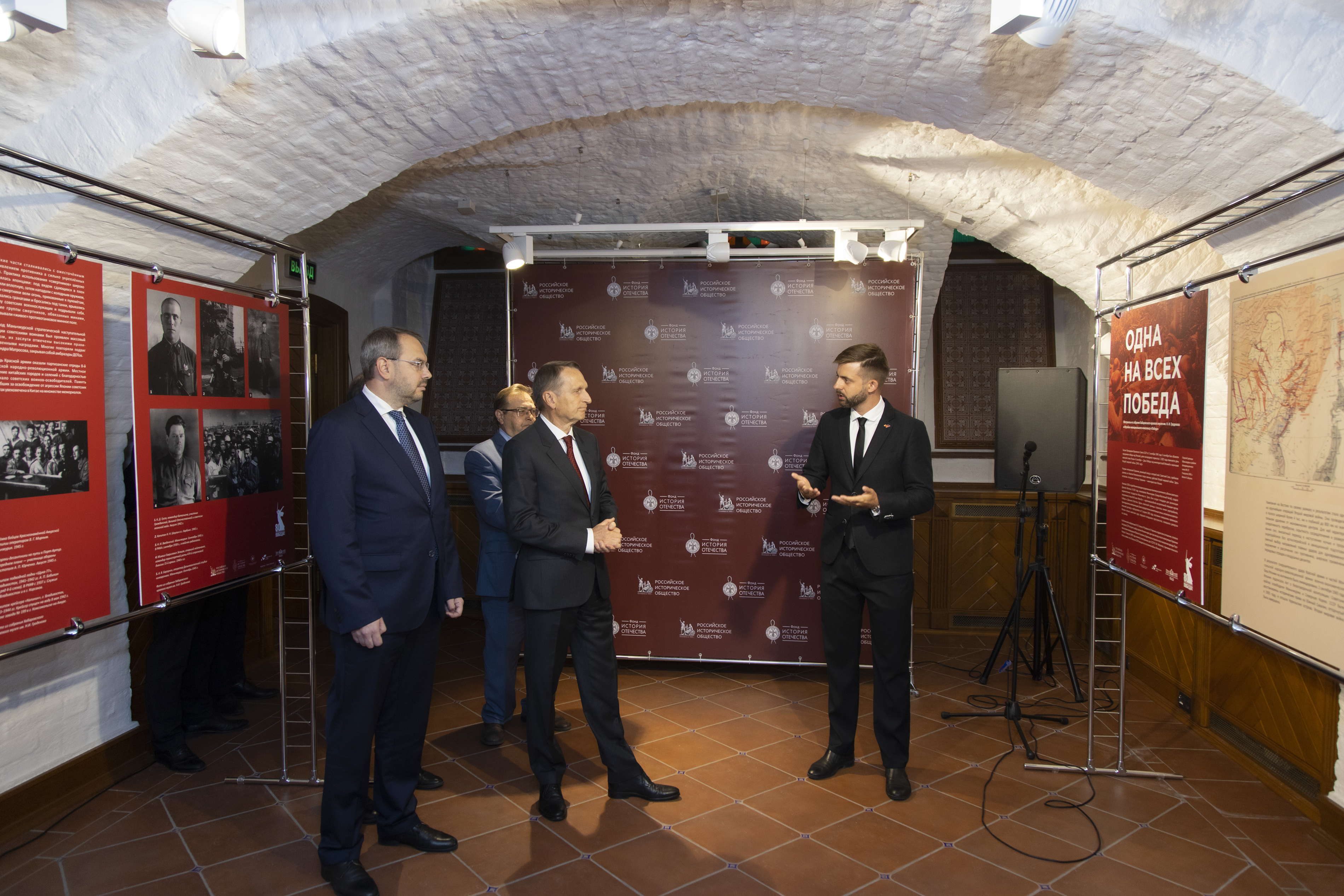 Перед началом мероприятия Председатель Российского исторического общества Сергей Нарышкин открыл в Доме РИО тематическую выставку, подготовленную Хабаровским краевым музеем имени Н.И. Гродекова, Центральным музеем Вооружённых Сил, Музеем Победы и Музеем просвещения «Книжная галерея Вольфсона».