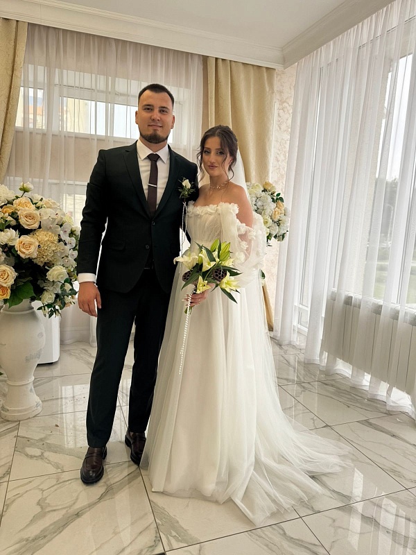 К тому же обычно августовская погода позволяет невестам примерить самые смелые образы - можно позволить и декольте, и дерзкий разрез. Однако рязанские девушки в этом месяце оказались на стороне классики - светлые тона платьев, элегантные силуэты. Ткани - чаще гладкие, кружева мало, но пока держит свои позиции органза. Самый востребованный образ августа - обнаженные плечи, едва прикрытые тканью спущенных рукавов, слегка расширенная юбка платья.