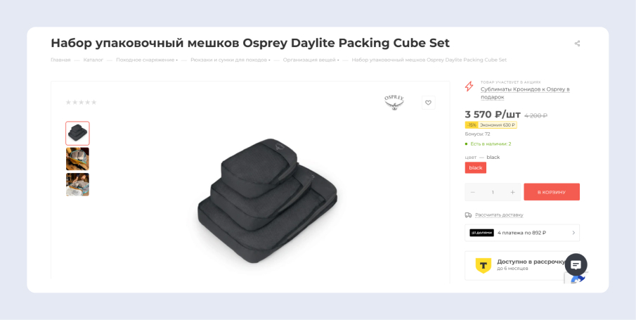 Бандл от «Трамонтаны» — при покупке любого товара бренда Osprey упаковка Кронидов в подарок