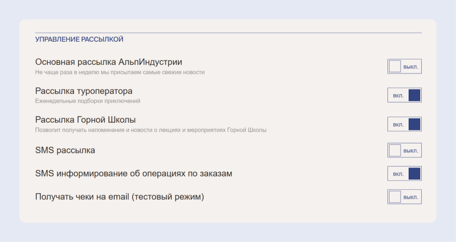 Управление рассылкой в личном кабинете «АльпИндустрии»