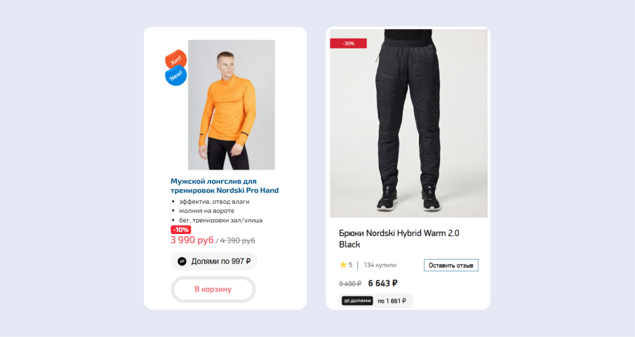 Карточки товаров Five-sport.ru и Nordski