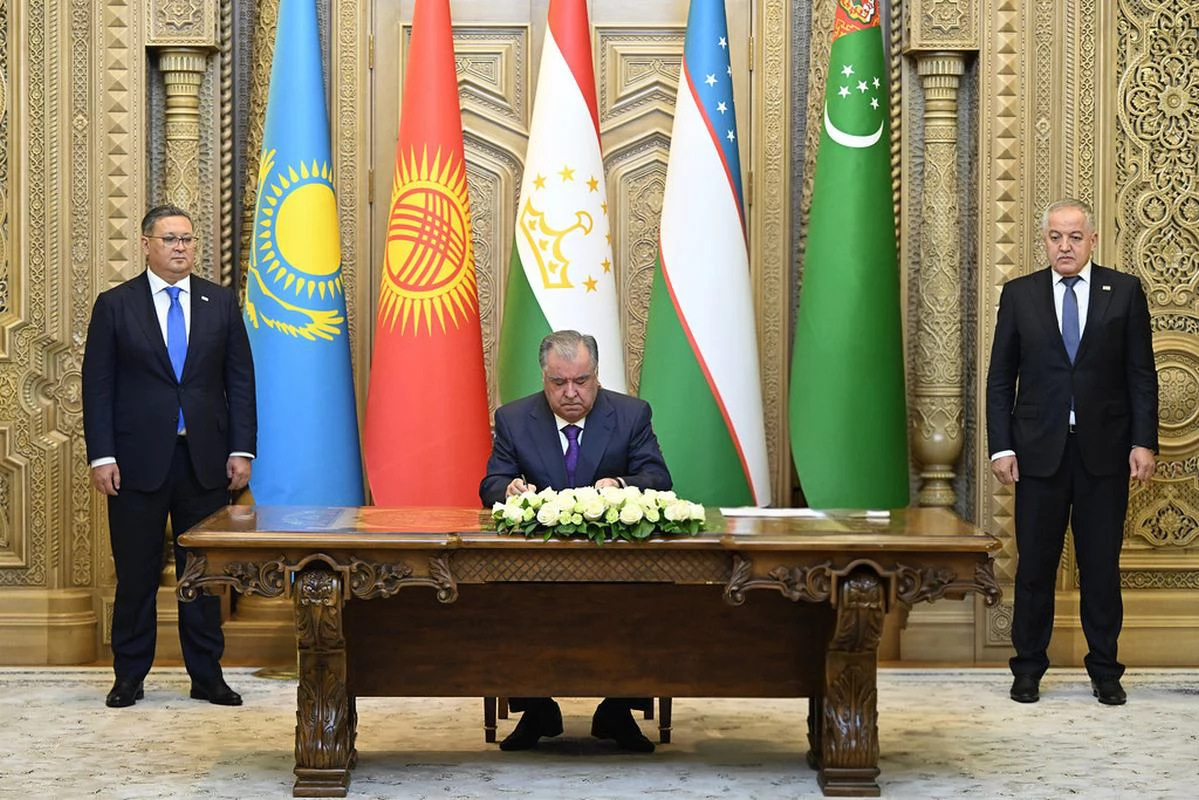 В завершение встречи состоялась церемония подписания Договора о дружбе, добрососедстве и сотрудничестве в целях развития Центральной Азии в двадцать первом веке, под который свою подпись поставил Президент Республики Таджикистан Эмомали Рахмон.