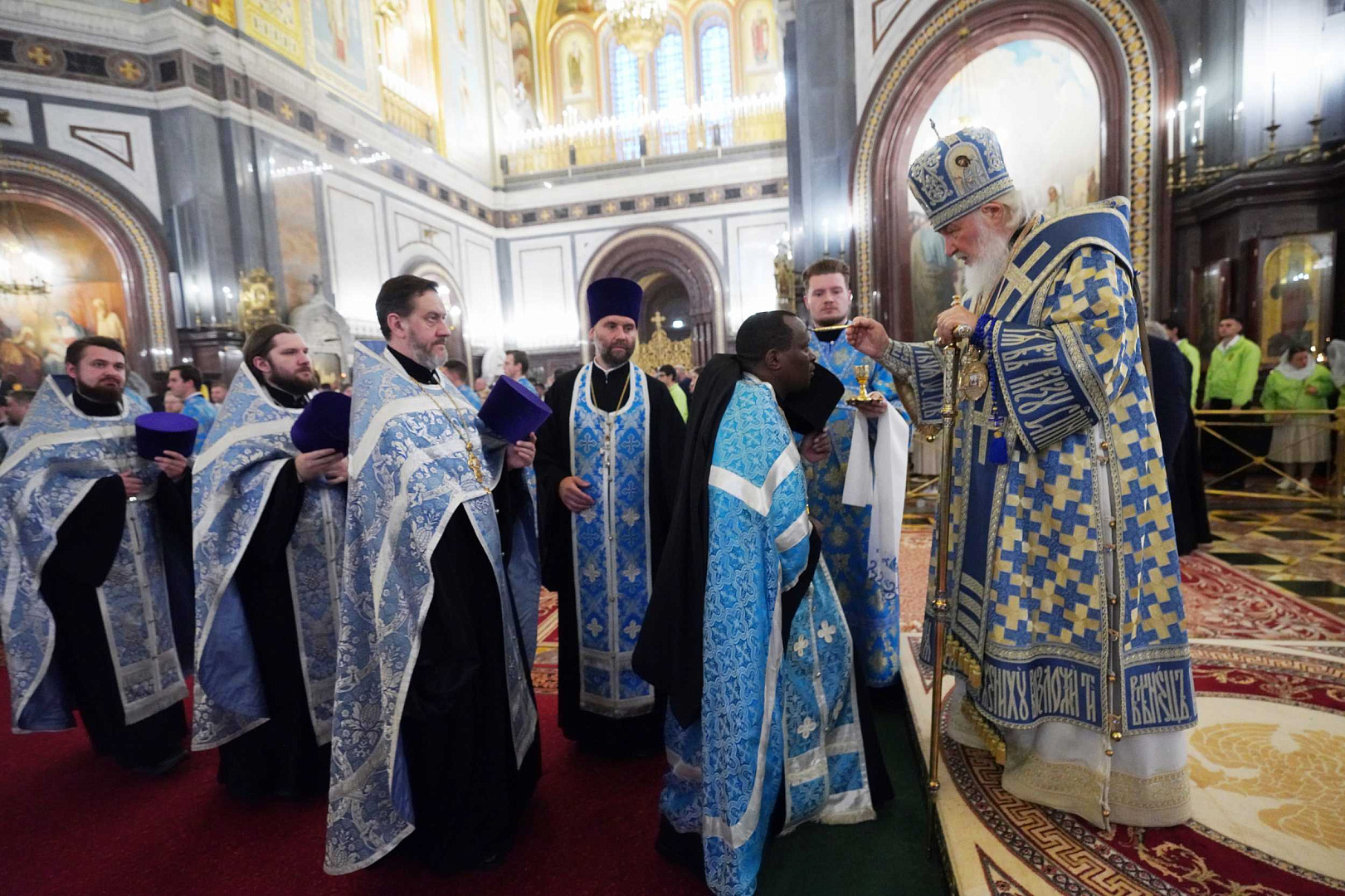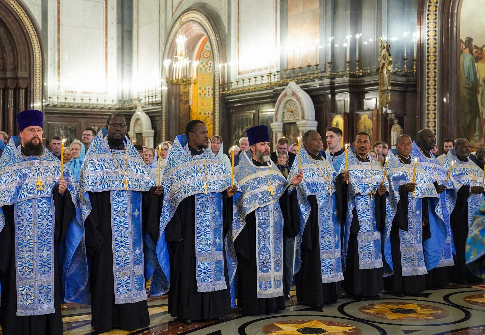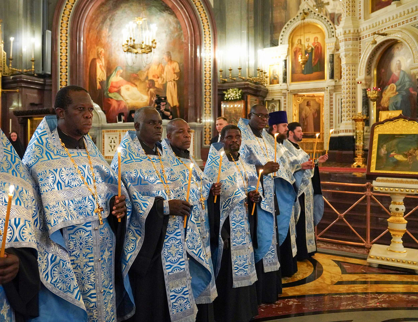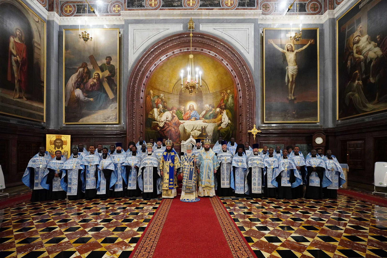 Сегодня за богослужением присутствует православное духовенство, принадлежащее нашей Церкви, Московскому Патриархату, которое несет свое служение на Африканском континенте. Создан Африканский экзархат, который возглавляет Пресвященный митрополит Константин, сегодня также присутствующий и участвующий в богослужении. И я особенно радуюсь тому, что наши братья-сослужители, несущие свое непростое служение в Африке, сегодня также имеют возможность помолиться в этом величественном храме.