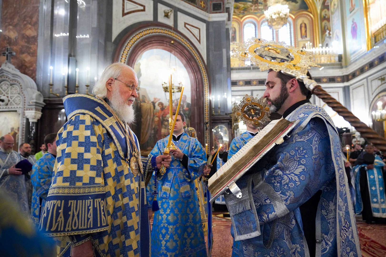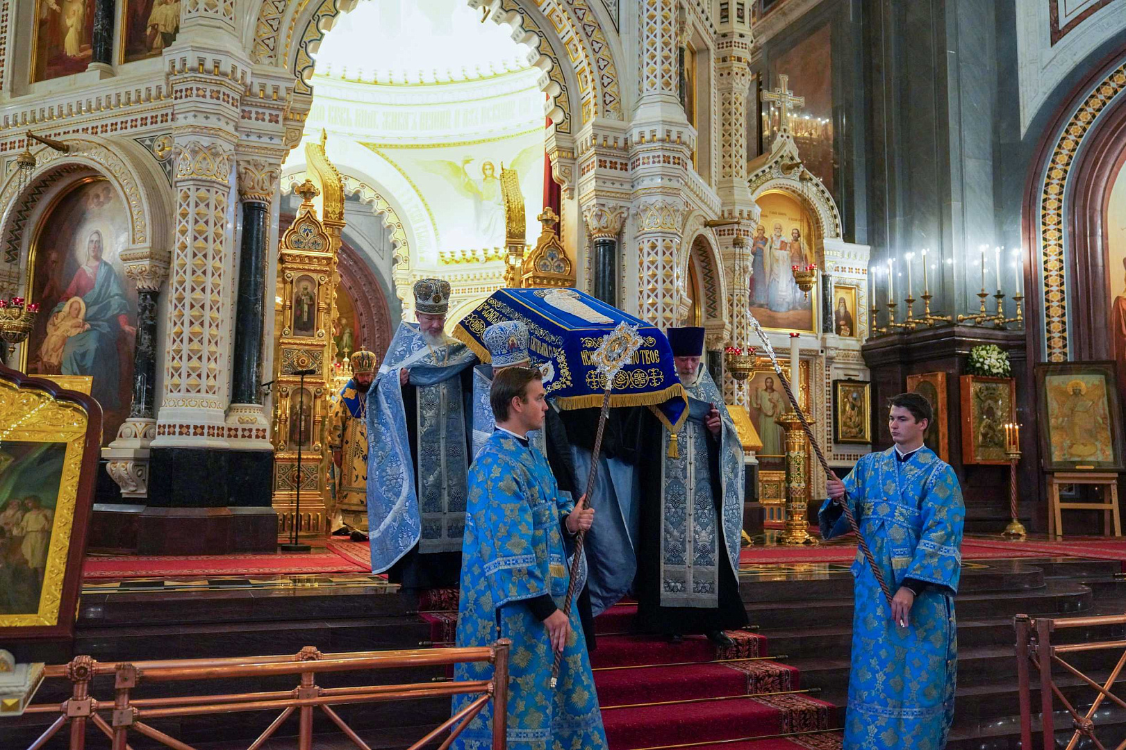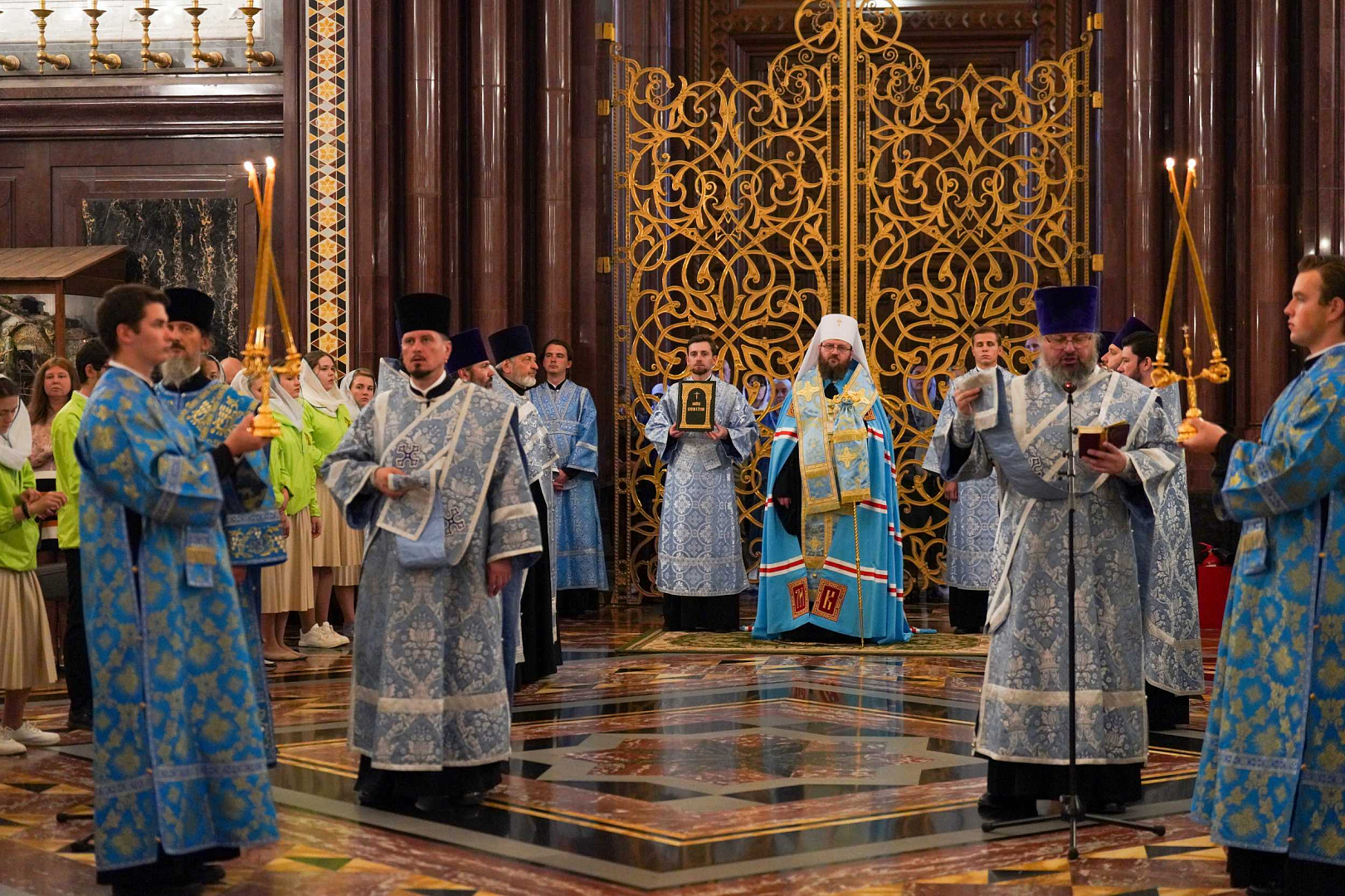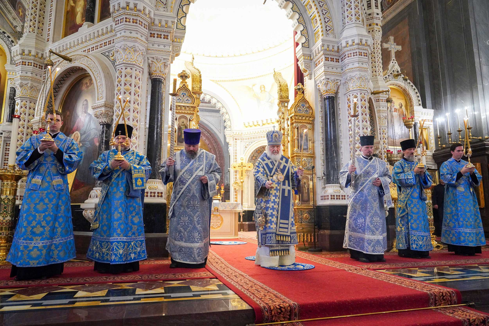 В канун праздника Успения Богородицы Святейший Патриарх Кирилл совершил всенощное бдение в Храме Христа Спасителя