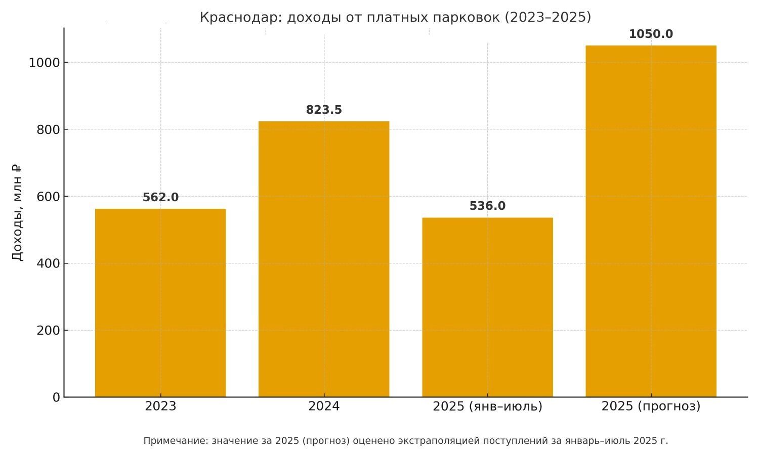 По данным KubanPress, в 2024 году бюджет Краснодара пополнился более чем на 823 миллиона рублей за счет работы платных парковок и штрафов за нарушение правил. В 2025 году прогнозируется рост этой суммы, поскольку в центре добавляются новые зоны стоянки.