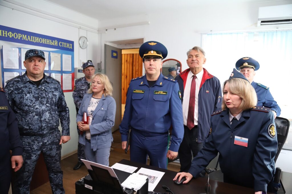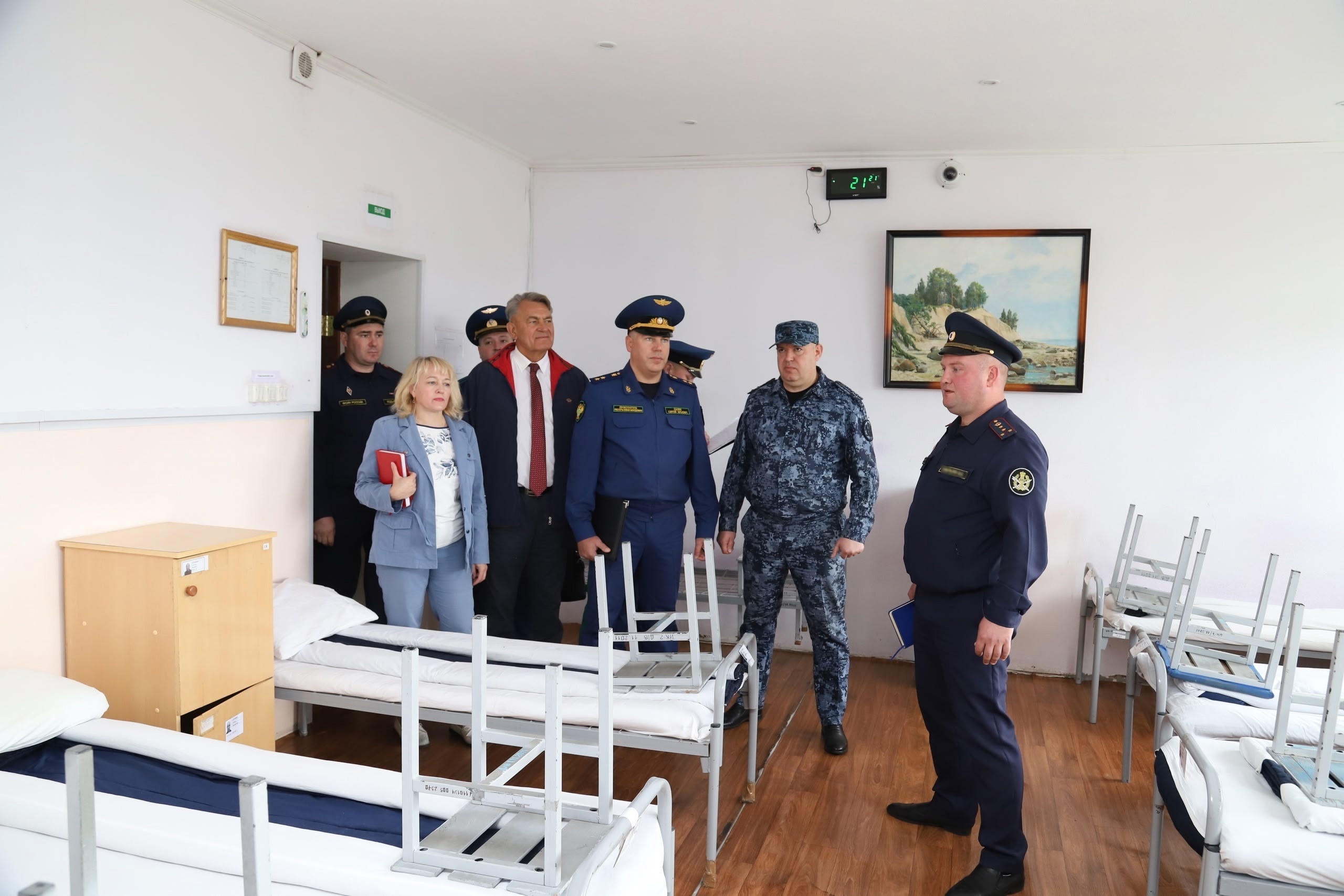 Были осмотрены помещения для проведения краткосрочных и длительных свиданий, столовая, дежурная часть, медицинская часть, штрафной изолятор, отряды различных условий содержания, швейный цех производственной зоны учреждения.