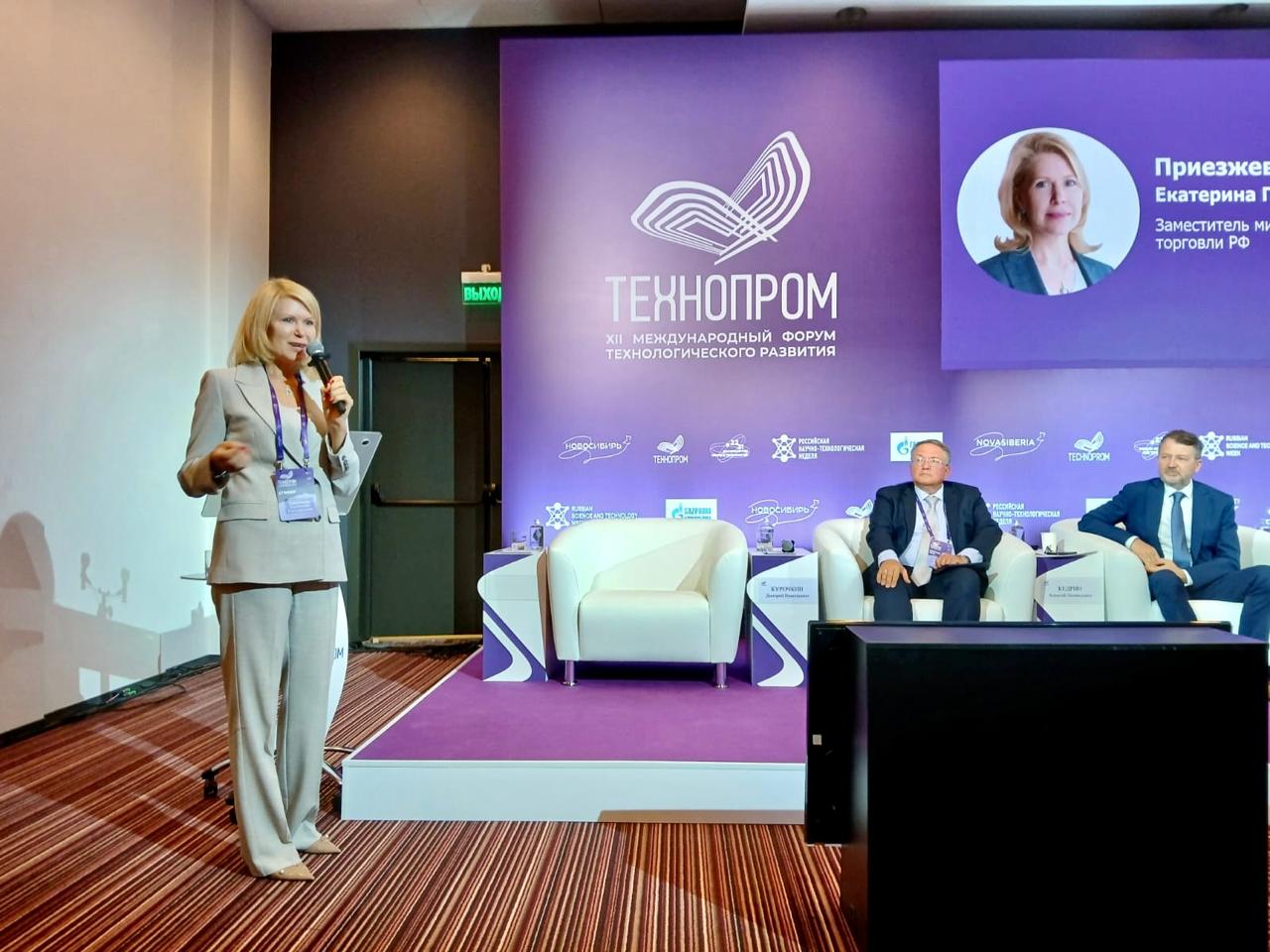 Заместитель министра промышленности и торговли РФ Екатерина Приезжева представила систему поддержки развития отечественных медицинских и фармацевтических производителей в достижении технологического лидерства.