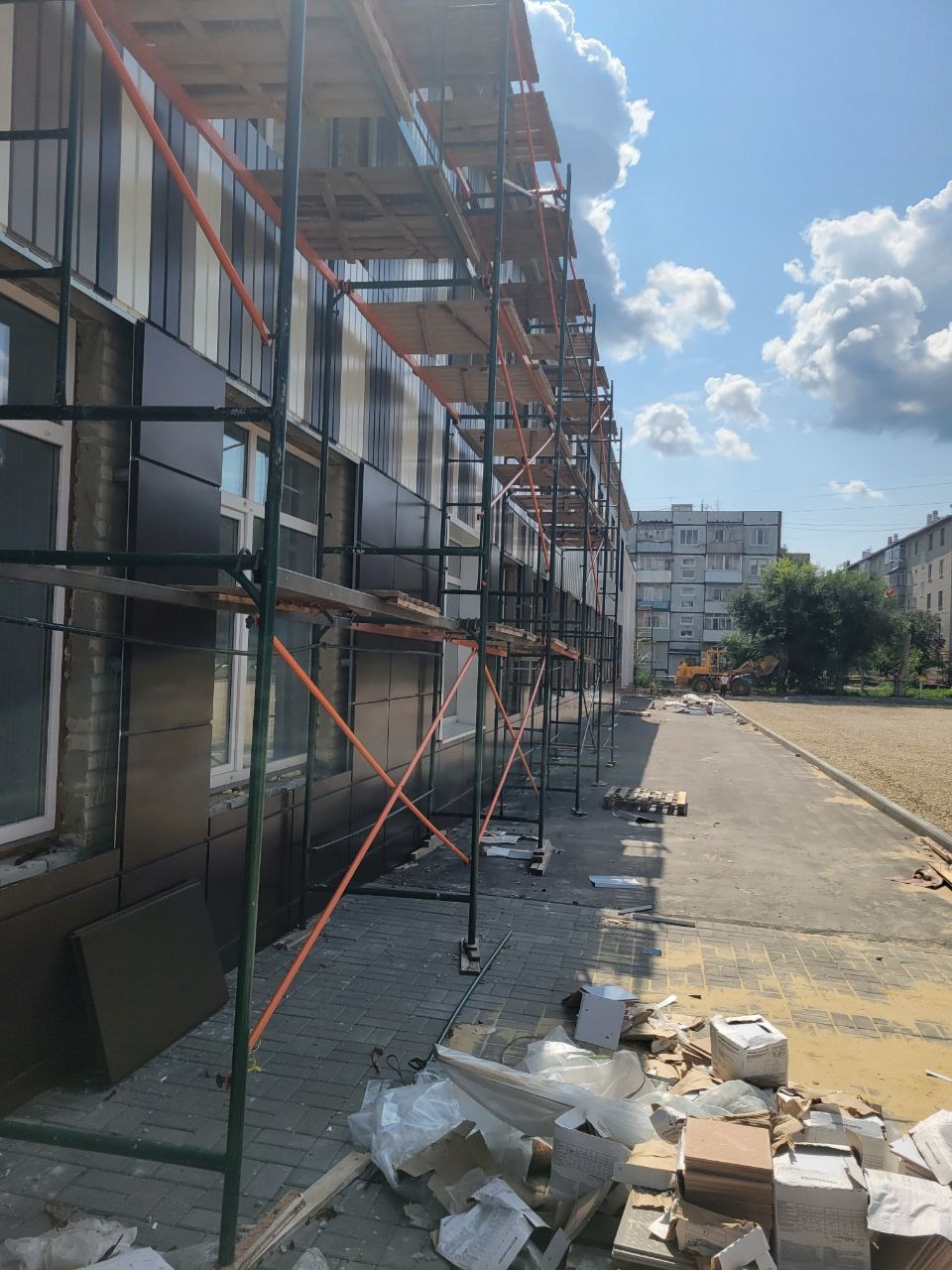 Ранее сообщалось, что сроки завершения всех работ в первом корпусе школы №35 были скорректированы из-за дополнительного объёма задач. Изначально не планировалась замена напольного покрытия в коридорах и рекреациях четырёхэтажного здания, а также монтаж вентилируемого фасада.