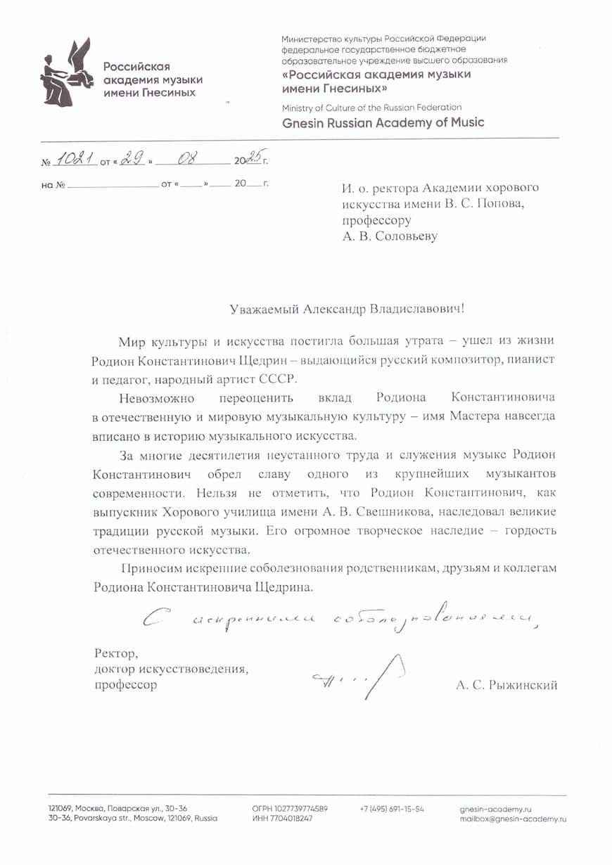 От нас ушел величайший русский композитор, гений, которого при жизни причисляли к ряду классиков. Мне повезло формироваться в ауре его музыки, соприкасаться с ним лично, и многие его заветы я использую в своей дирижерской деятельности. Например, «Музыка – это контрасты»: краеугольный принцип подхода Щедрина к любому исполнению и к интерпретации своих сочинений.