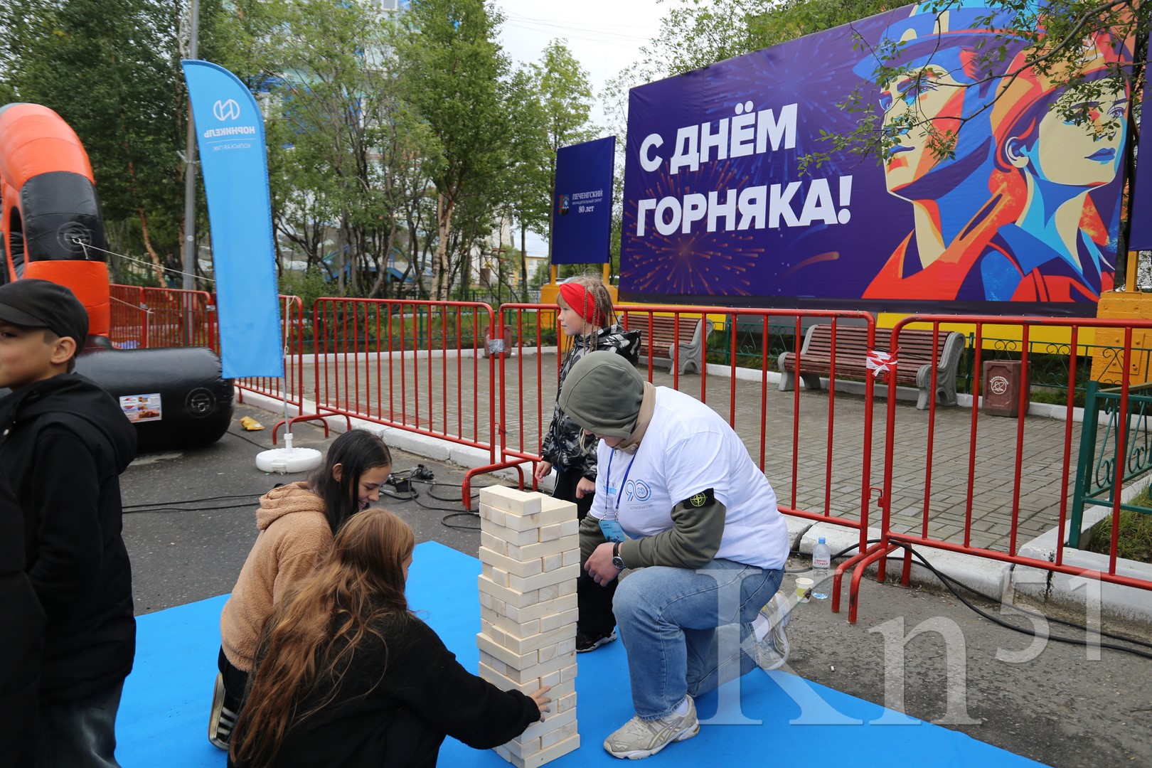 Весь пятничный вечер на главной площади Заполярного будет весело, активно, музыкально. Здесь развернулась главная площадка празднования Дня горняка в Печенгском округе.
